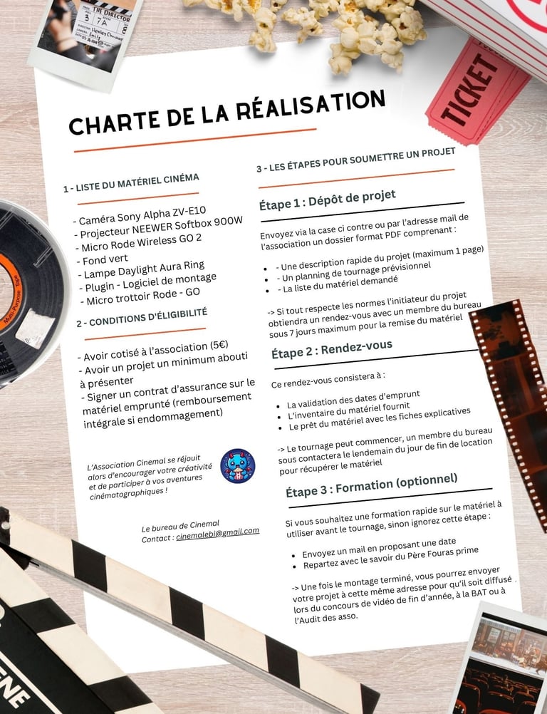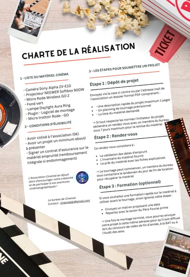 Aider les étudiants à réaliser leur projet photos/vidéos qu'ils soient professionnels ou à but récréatif 🍿