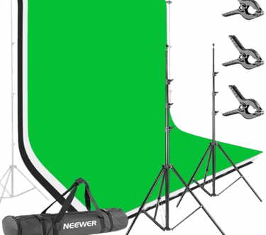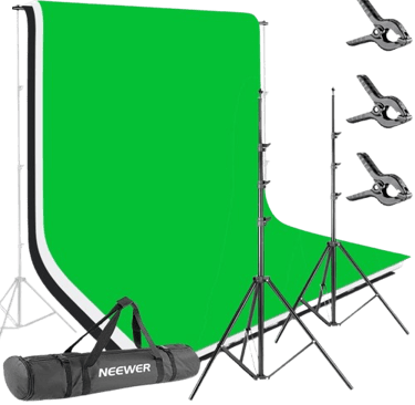 Le kit possède 3 toiles : une verte, une blanche, et une noire. La toile de fond verte est parfaite pour l'incrustation chromatique, la VFX ou le streaming, tandis que les toiles de fond blanche et noire permettent de réaliser des prises de vue et des portraits professionnels. Les toiles se déplient jusqu'à 2,60 m de hauteur pour une couverture optimale.